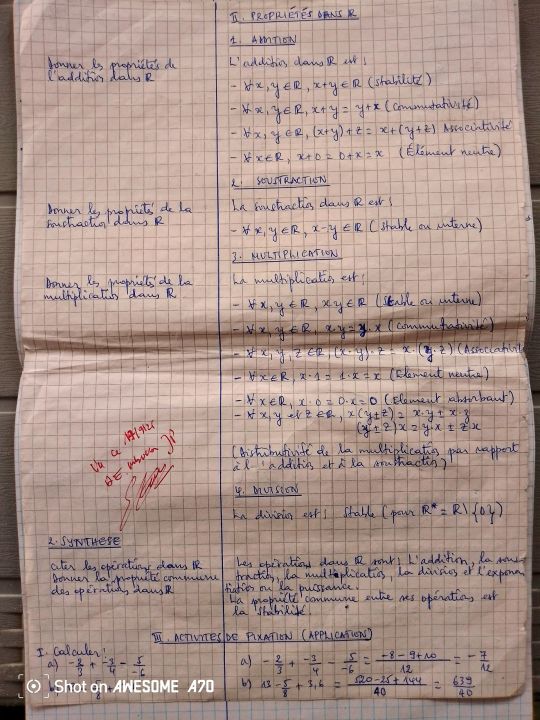 L'addition dans R est la loi de composition interne notée > qui, à deux réels a et b, fait correspondre leur somme a+b